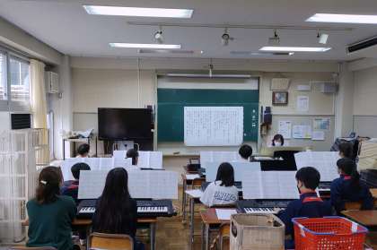 I組は合奏の練習と並行して取り組んでいます。(副校長)