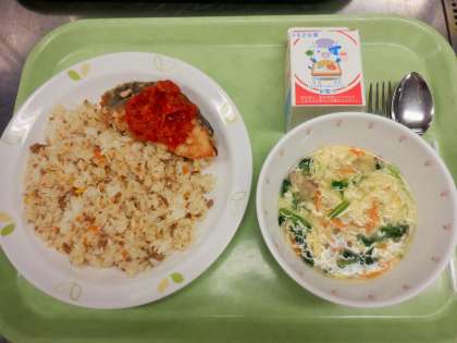 コーンピラフは、味の評判は良かったのですが、残菜が多めに残りました。やはりご飯に具が混ざったピラフなどの料理は、ボリュームを多く感じやすいのだと思います。また、砧中の生徒たちから、「コーンが苦手」という声をよく聞く気がします。私が栄養士になってから、コーンの登場回数も増えてしまったので、気をつけたいと思います。