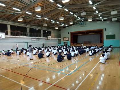 3年生は、学年朝礼で「学習がんばろう」「生活をしっかりしよう」と確認しました。