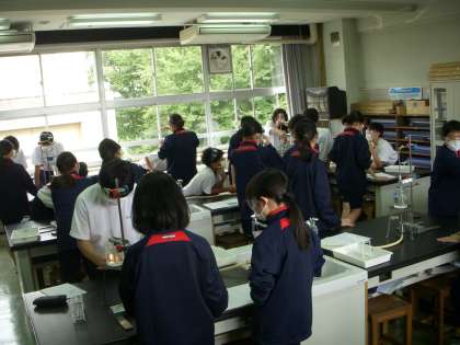 ガスバーナーと水の入ったビーカーを使って、パルミチン酸を加熱します。