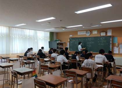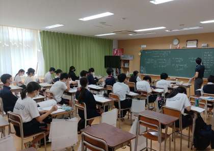 3年生は、初めて習う先生に緊張しながらも、真剣に授業に臨んでいます。教科書には載っていないけど知っていると便利な公式などもその理由も説明しながら紹介されていました。
