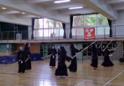 顧問の、「先輩に追いつくぞ〜」という声が格技室に響いています。(副校長)