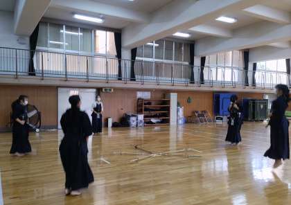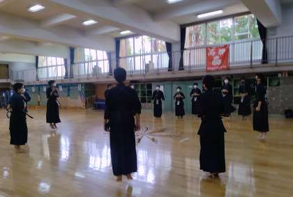 午後の部は経験者の時間、他校を招いて合同練習を行います。