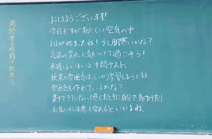 今朝はこんなメッセージを見つけました。朝から温かい気持ちになりますね。(副校長)