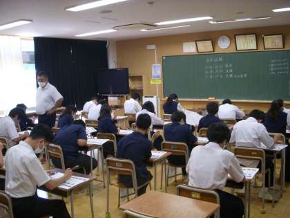 一生懸命、悩みながら30分の社会科のテストに取り組んでいます。