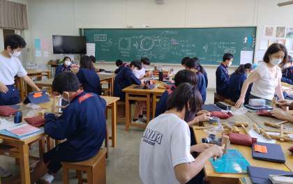 教室の中はトントンという音に包まれていますが、教員が全体に声をかけると、トントンという音がピタッと止み、教員の声に耳をかたむけます。