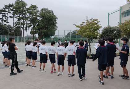 選手の皆さんが砧中の代表として、精一杯力を発揮することを期待しています。(副校長)