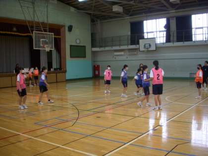 ボールを運ぶ、シュートする、守る、など、基本の動きができるかな。