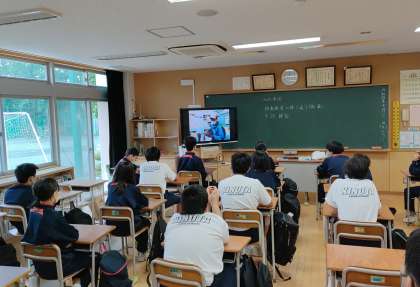 I組が連合移動教室の思い出を画像を見ながら振り返っています。