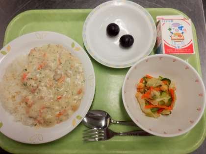 ただ、大きな反省点が1つ!クリームソースの量が多かったことです。子供たちの残菜を見ると、「ご飯は少ないけどソースが多く残っている」というパターンが多く、普段はほぼ完食してくれているクラスもクリームソースが残っていました。これは申し訳なかったです。次回は、ソースの量を1.5割減にして作りたいと思います。