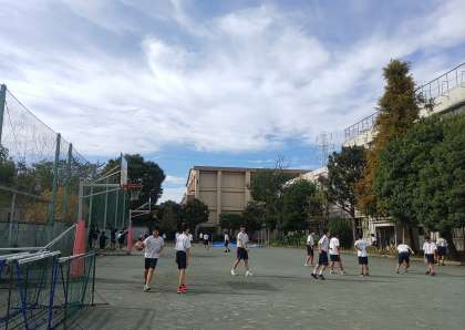 バスケットボールも2グループが仲良くゴールを共有しています。