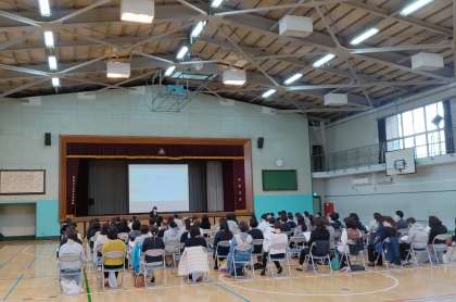 本日、生徒の皆さんにも同じ話をしていますので、ご家庭で共通の話題にしていただきますようお願いいたします。(副校長)