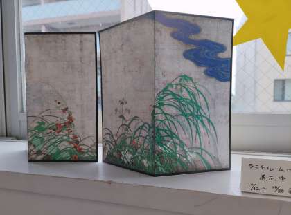 特別展示中のランチルームへと誘う美術科の心遣いです。(副校長)