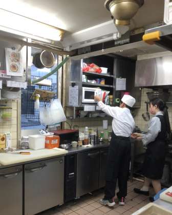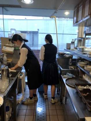 老舗の喫茶店、制服もきちんとして、店員さん顔負けです。