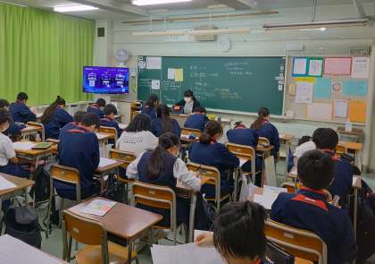 職場体験のお礼状の書き方をオンラインで国語科教員から説明を受けています。