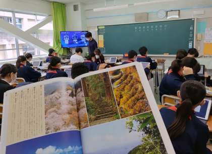 美しい自然の写真を鑑賞し、自分が選んだ理由をロイロノートで提出し、発表しています。