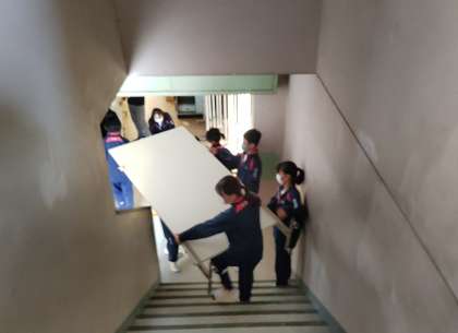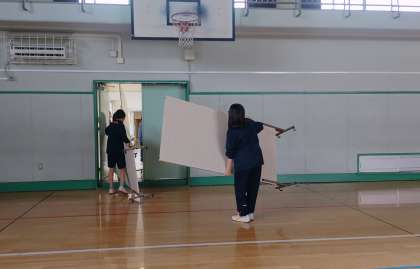 学芸発表会実行委員全員で展示用パネルを運んでいます。