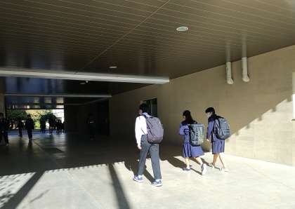 1年生DEF組は、予定通り移動教室に出発しました。合唱曲のCDも持って行っているようです。