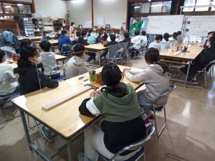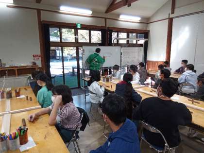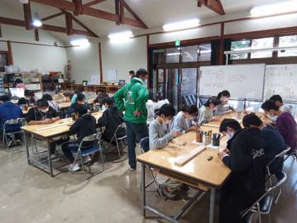 小刀を持つのが初めての人が多く、慎重に削っています。