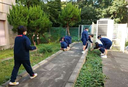 班の代表が同じくらいの大きさの同じ葉っぱを採りにいきました。