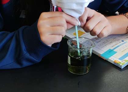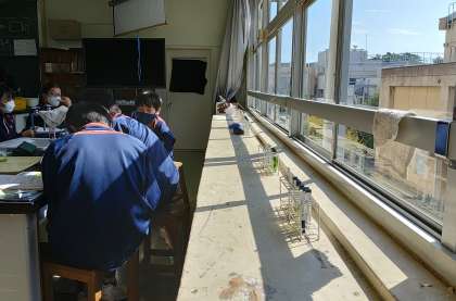 窓際で葉っぱが光合成をした後の様子を観察します。