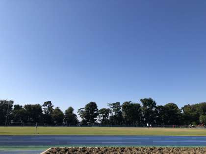 青々とした空の下、陸上部は総合運動場陸上競技場にて開催されている、世田谷区陸上競技選手権大会に出場します。