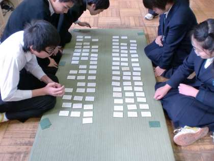 百人一首大会の予選に向けて、国語の授業で百人一首の練習をしました。