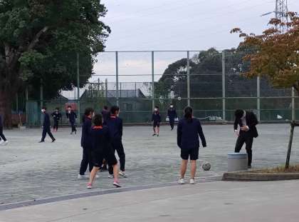 得意のリフティングを披露した先生のお腹にボールが直撃