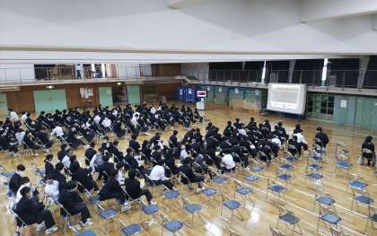 1年生は、格技室で鑑賞します。保護者の方の席もあります。よろしかったらご鑑賞ください。