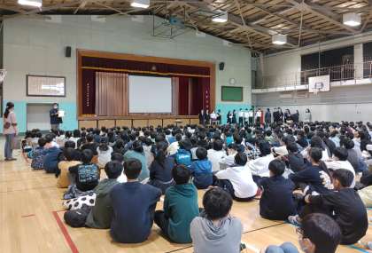 砧の学び舎の小学6年生の皆さんが砧中に来てくれました。