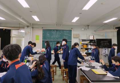 食物に含まれる養分がどのように消化されるのかを実験しています。(副校長)