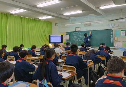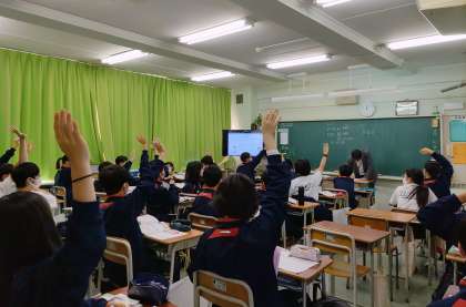 真剣な学習態度です。理科では、火成岩について学習しています。