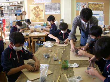 専門の方に講師として来ていただき、作品に取り組んでいます。