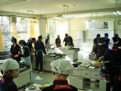 普段から包丁を使い慣れている生徒もいて、ある生徒の包丁さばきには見とれてしまいました。