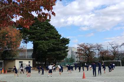 元気なかけ声とともに体育の授業が始まりました。(副校長)