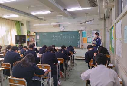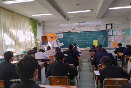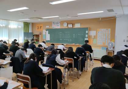 数学のテストに解答しています。残り時間もわずかとなってきました。わかる問題から取り組むよう試験監督からの声掛けがありました。(副校長)