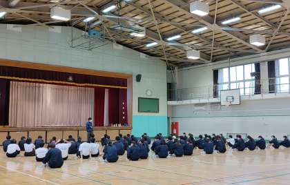 今日から標準服登校、更衣も素早く行えると良いですね。(副校長)