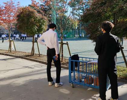 生徒の皆さん、ボール片付けにご協力ありがとうございます。(副校長)