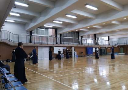 剣道部では、土曜日は初心者と経験者の時間帯を分けて練習を行っています。