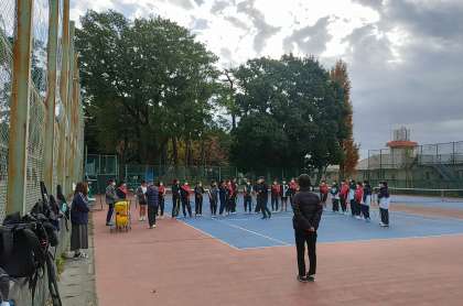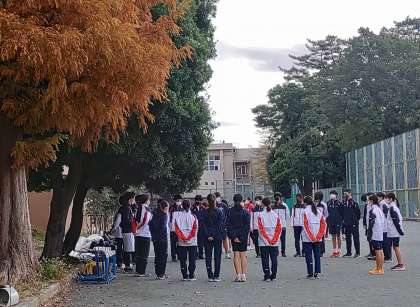 テニスも陸上も天候特に風は大きく影響しますね。寒いのでしっかりウォーミングアップしてくださいね。(副校長)