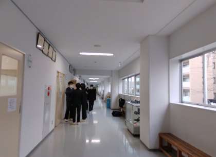 帰りの会が終わった生徒が部活動の時間を確認に来ています。