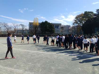教員の見守る中、子ども駅伝の練習が始まりました。