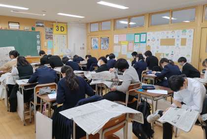 3年生の集中力は、さすがです。教室内には、新聞をめくる音しかしません。(副校長)