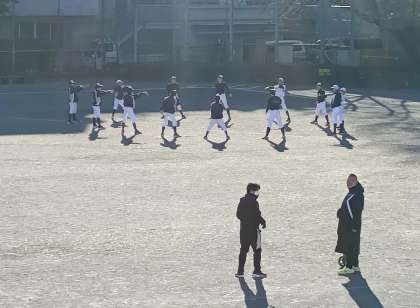 今日は、晴れて青空がきれいですね。太陽の日差しを受け、野球部が練習を始めています。