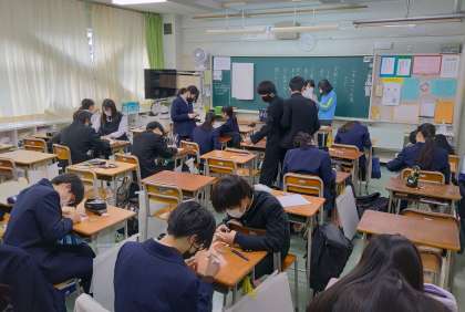 1,2年生は、これから受験本番を迎える3年生への応援メッセージを書いています。