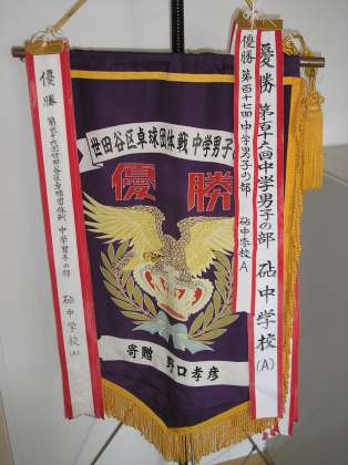 卓球部(写真は優勝旗)、バトミントン部、吹奏楽部、