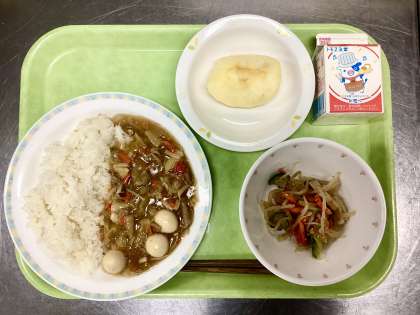この日の給食は中華丼でした。3学期になって、欠席者は少なくない状況が続いていますが、中華丼、春雨中華サラダともに1・2学期よりも残菜が少なくなったことは、とても嬉しいです。中学生の給食として、どんな味付けが、食材のバランスが適しているのか、色々考慮しながらレシピを変更し、調理員さんもそれを信じて付いてきてくれたおかげだと思います。もちろん、給食指導をする先生、大切に食べてくれる生徒たちの協力も必要不可欠です。主な変更は白菜・醤油の量を増やして、水分を減らしたことです。