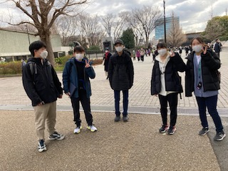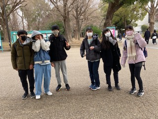上野公園散策中の生徒たち。