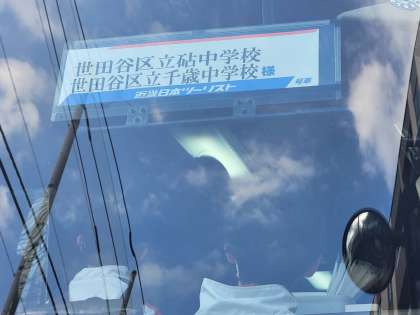 8時集合、8時20分に学校を出発、千歳中学校陸上部も乗車しております。