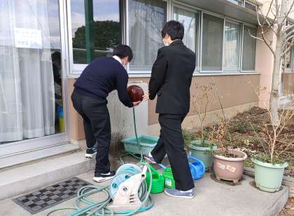 遊んだ後にボールを洗って返していました。